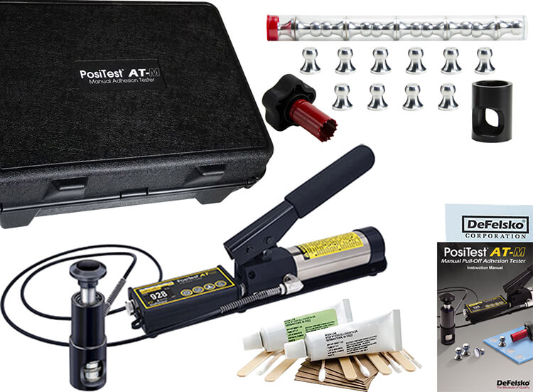 The DeFelsko ATM20 PosiTest AT-M Adhesion Tester 20mm Kit includes everything needed for testing: - DeFelsko PosiTest ATM20 Manual Pull-Off Adhesion Tester